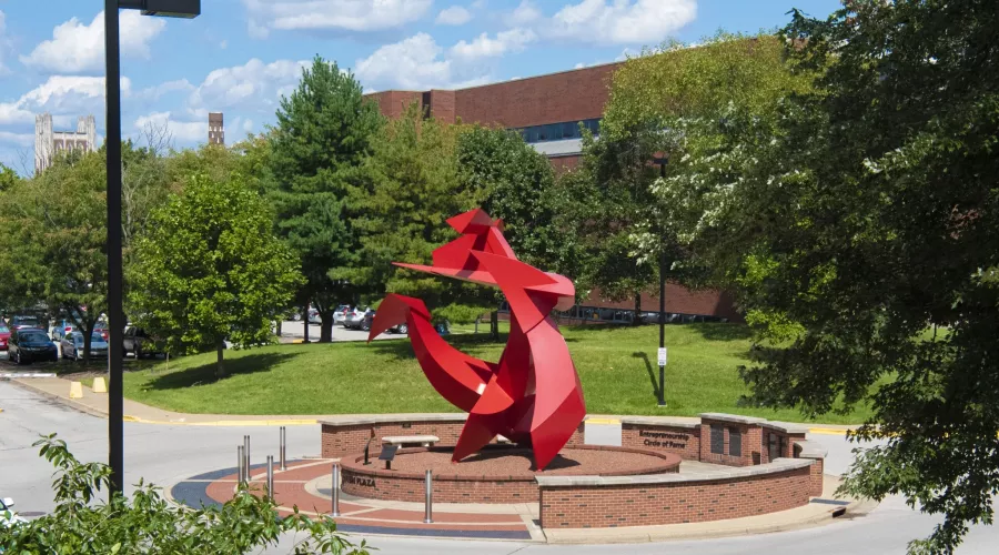 “The idea was to create something that would be eye-catching and fun to look at, that would symbolize the power of creativity, and… suggest possibilities rather than solutions,” said T. Ballard Morton at the time, then-Executive in Residence of the College of Business. He is also a member of the Entrepreneurship Circle and Founder of the College’s Cardinal Challenge business plan competition. “I think Big Red fulfills these desires and serves as a joyful inspiration to us as we meet the challenges of change and growth.”